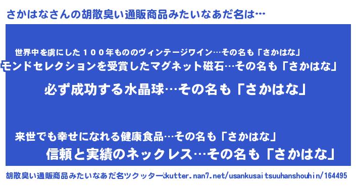 | 意味不明あだ名 | 『ペロリンさかはな』『永久保存さかはな』 |