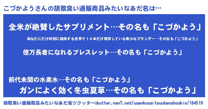| ヘコむあだ名 | 『こづふぇ~』『こづお』『酢こんぶ』 |
