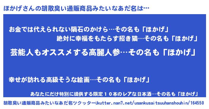 | ヒーロー風カッコイイあだ名 | 『究極戦士ホカゲ』『愛の使者ほかげ』 |