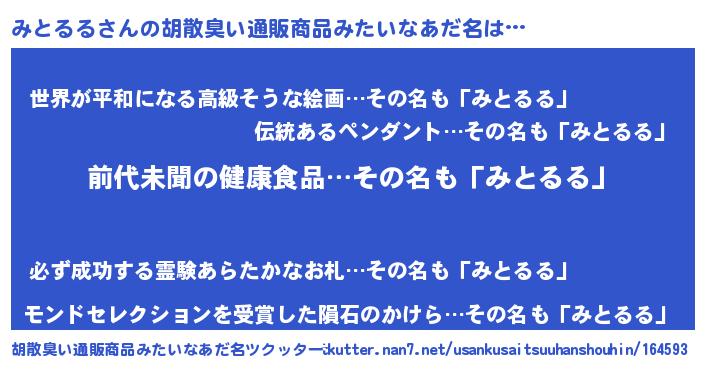| ヒーロー風カッコイイあだ名 | 『ネオミトルル』『ウルトラみとるるマン』 |
