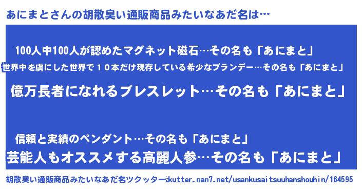 | ヘコむあだ名 | 『あににー』『あにお』『酢こんぶ』 |