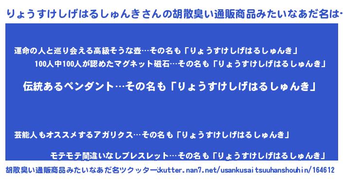 | 伝説のあだ名 | 『解き放たれた遊び人りょうすけしげはるしゅんき』 |