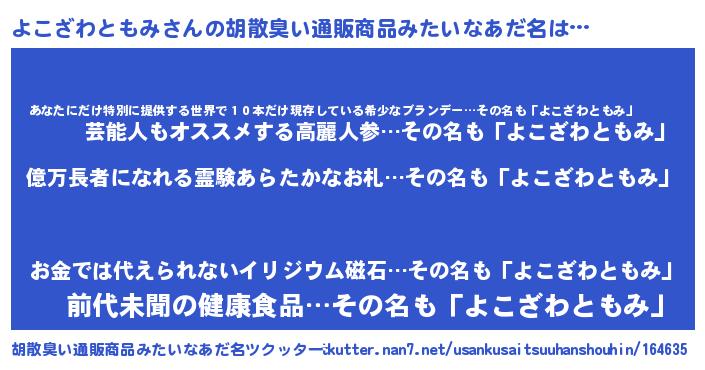 | 女子向けラノベタイトル風あだ名 | 『誰かこのよこざわともみを説明してください! ~契約から始まるウェディング~』 |