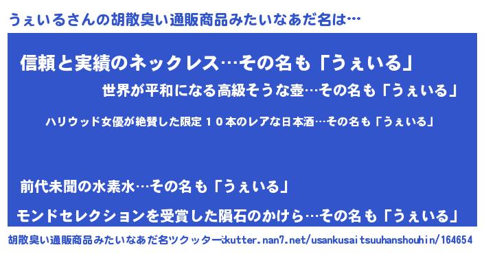 | 意味不明あだ名 | 『住所不定無職うぇいる(56歳)』 |