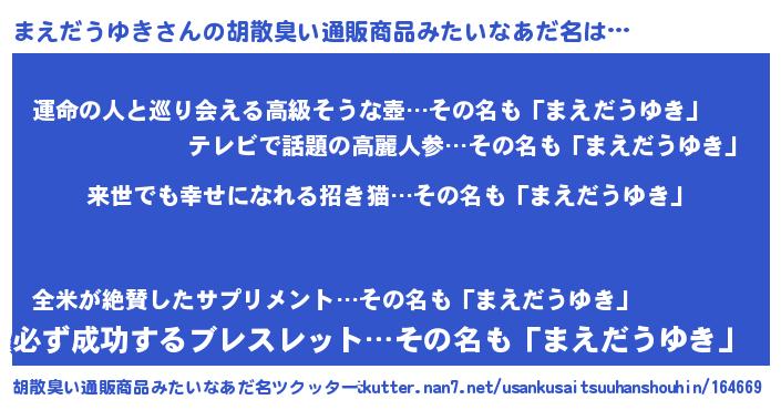 まえだうゆきさんの胡散臭い通販商品みたいなあだ名をツクッター!