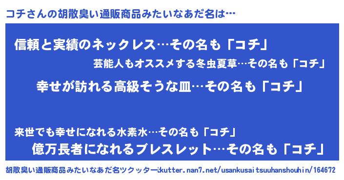 | ヘコむあだ名 | 『つくし』『コチっぺ』『コチにー』 |