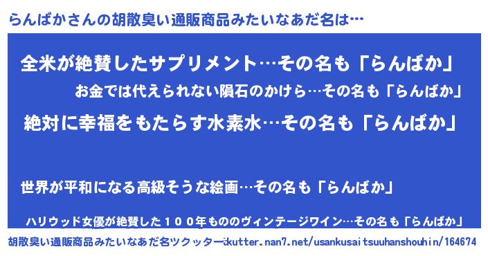 | 意味不明あだ名 | 『永久保存らんばか』 |