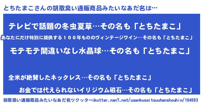 | ヘコむあだ名 | 『とちにゅー』『とちぷりん』 |