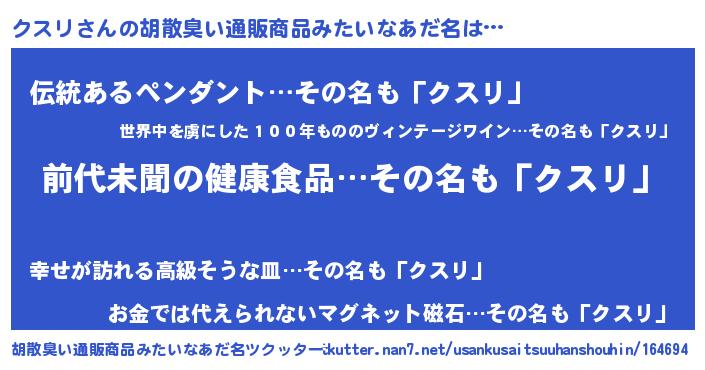 | ヘコむあだ名 | 『クスリ(爆)』『クスっちょ』『豆乳』 |