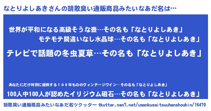 | 肩書あだ名 | 『なとりよしあき総統』 |