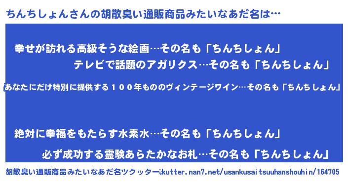 | 意味不明あだ名 | 『住所不定無職ちんちしょん(5歳)』 |