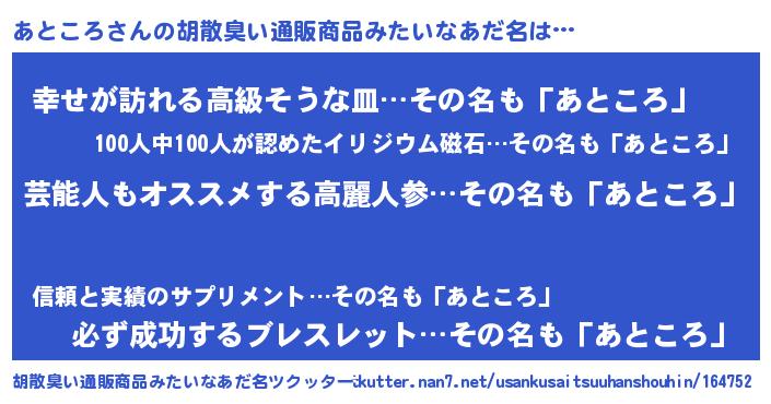 | ヘコむあだ名 | 『酢こんぶ』『あとにゅー』 |