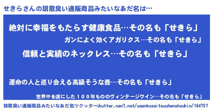 | 男性向けラノベタイトル風あだ名 | 『ダンジョンにせきらを求めるのは間違っているだろうか』 |