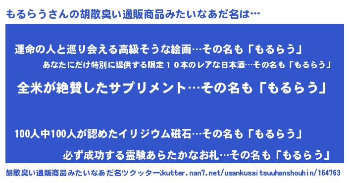 | ヒーロー風カッコイイあだ名 | 『幻影騎士モル』『ウルトラもるらうマン』 |