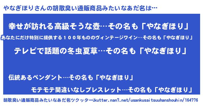 | 意味不明あだ名 | 『自称やなぎほり』『ペロリンやなぎほり』 |