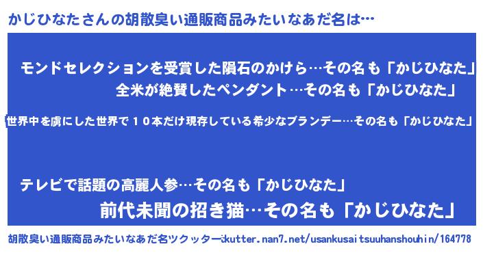 | 意味不明あだ名 | 『住所不定無職かじひなた(79歳)』 |