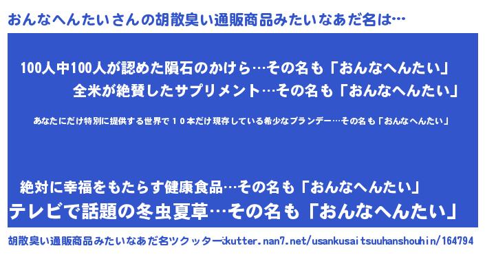 | 意味不明あだ名 | 『住所不定無職おんなへんたい(89歳)』 |