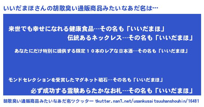 | 男性向けラノベタイトル風あだ名 | 『うちのいいだまほが世界を掌握している!』 |