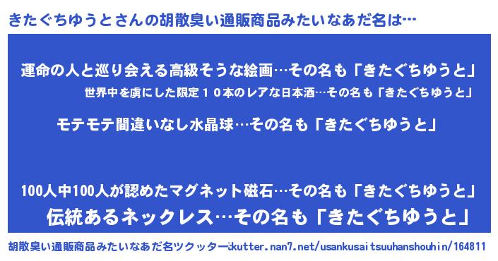 | 恥ずかしいあだ名 | 『プリティーきたぐちゆうと』『きたちん』 |