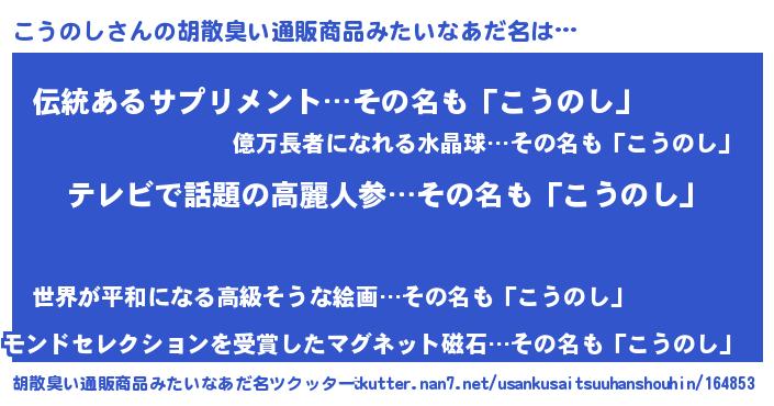 | 欧米人風あだ名 | 『アンジェラ・こうのし』 |