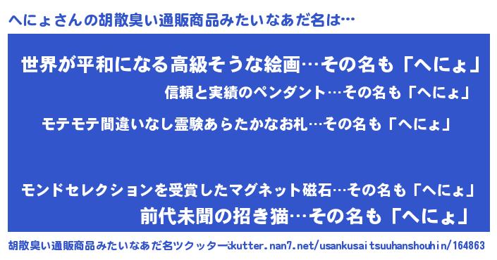 | 意味不明あだ名 | 『ペロリンへにょ』『へにょフォーエバー』 |