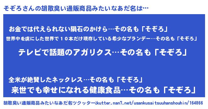 | ヒーロー風カッコイイあだ名 | 『最強戦士ソゾロ』『愛の使者そぞろ』 |