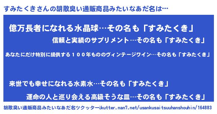 すみたくきさんの胡散臭い通販商品みたいなあだ名をツクッター!