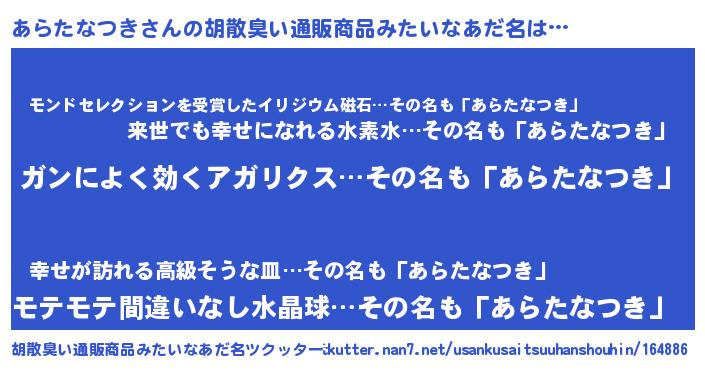 | 意味不明あだ名 | 『自称あらたなつき』 |