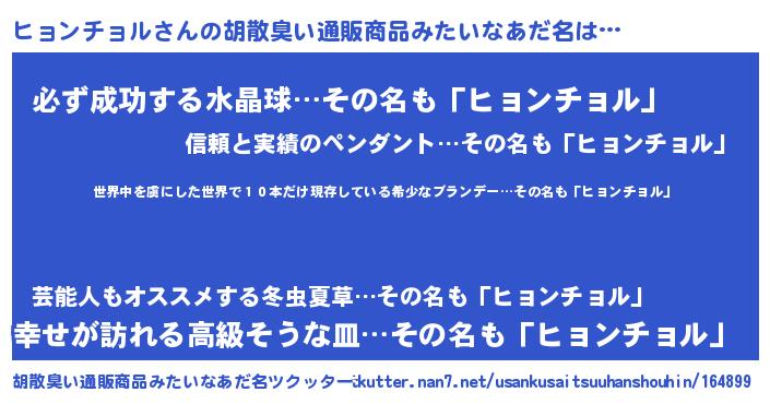 | 意味不明あだ名 | 『住所不定無職ヒョンチョル(79歳)』 |