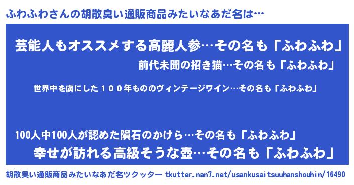 | ヒーロー風カッコイイあだ名 | 『仮面フワダー』『最強戦士フワフワ』 |