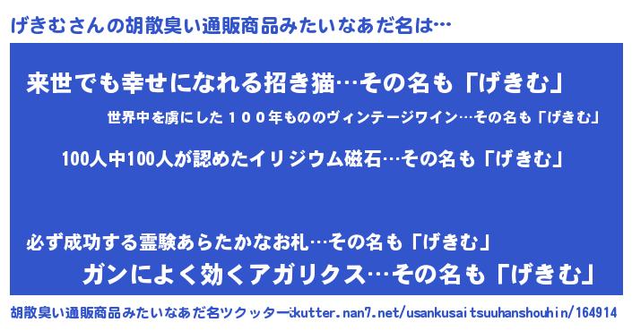 | ヘコむあだ名 | 『げきむ(笑)』『げきにー』 |
