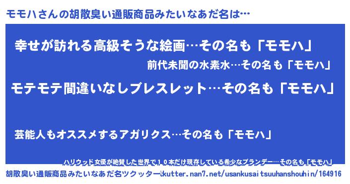 | 意味不明あだ名 | 『ペロリンモモハ』『モモハフォーエバー』 |