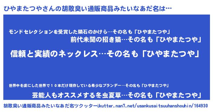 | 意味不明あだ名 | 『とにかく怪しいひやまたつや』 |
