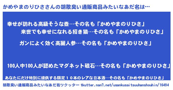 | 欧米人風あだ名 | 『ケンブリッジかめやまのりひさ』 |