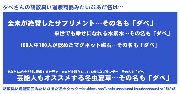 | ヘコむあだ名 | 『ダベを』『ダベ(震え声)』 |