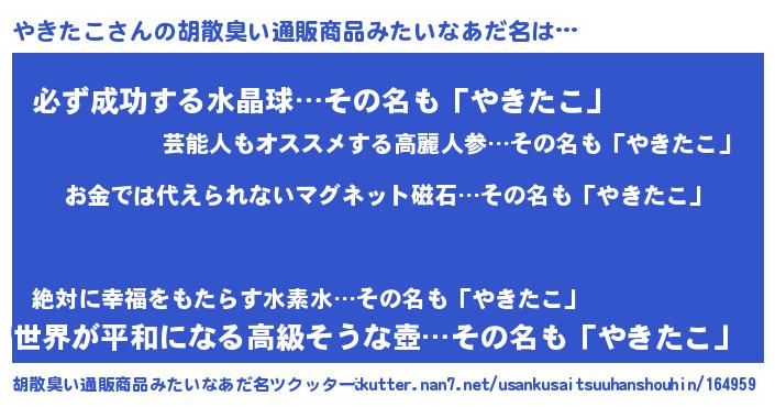 | 欧米人風あだ名 | 『ダニエルやきたこ』『マイケルやきたこ』 |