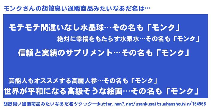 | 意味不明あだ名 | 『とにかく怪しいモンク』『自称モンク』 |