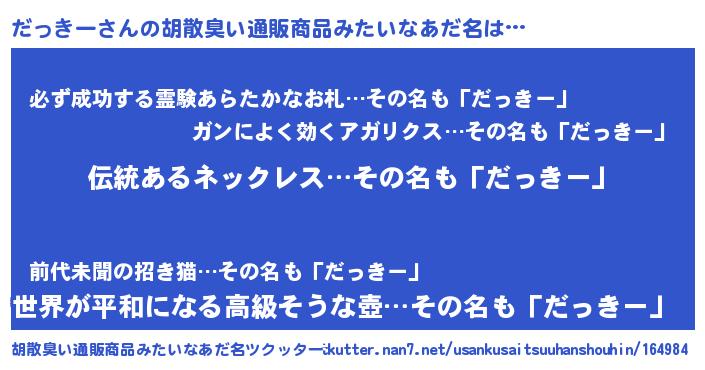 | 意味不明あだ名 | 『とにかく怪しいだっきー』 |