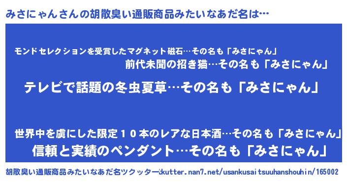| ヒーロー風カッコイイあだ名 | 『ウルトラ戦士ミサニャン』 |
