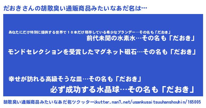 | 欧米人風あだ名 | 『だおき・ステッグマイヤー』 |