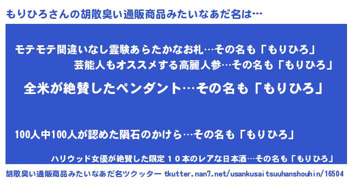 | 意味不明あだ名 | 『とにかく怪しいもりひろ』 |