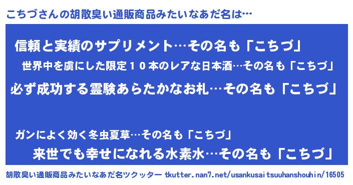 | ヘコむあだ名 | 『こちもー』『こちお』『こちづ(爆)』 |