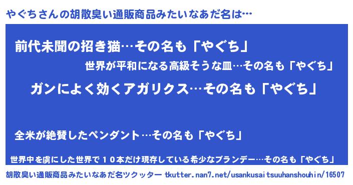 | ヘコむあだ名 | 『やぐち(爆)』『レバニラ』 |