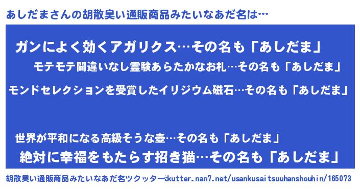 | ヒーロー風カッコイイあだ名 | 『慈愛の使者あしだま』『ネオアシダマ』 |