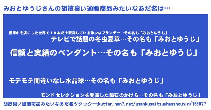| 意味不明あだ名 | 『とにかく怪しいみおとゆうじ』 |