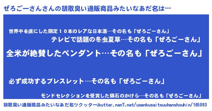| 意味不明あだ名 | 『とにかく怪しいぜろごーさん』 |