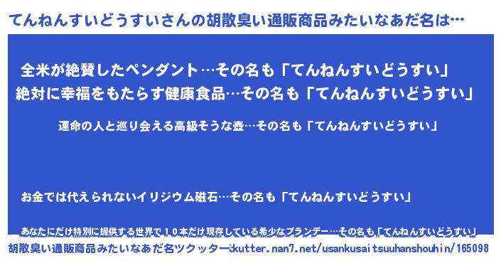 | 意味不明あだ名 | 『てんねんすいどうすいフォーエバー』 |