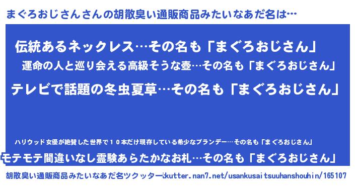 | 意味不明あだ名 | 『自称まぐろおじさん』 |