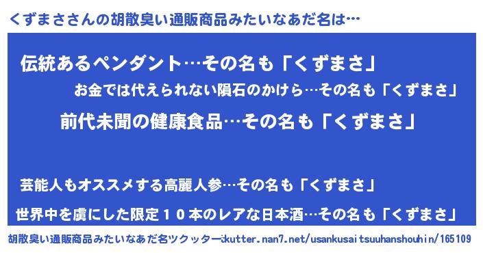 | ヘコむあだ名 | 『くずまさ(爆)』『くずっちょ』 |