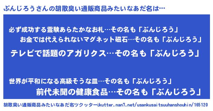 | 意味不明あだ名 | 『もやし科ぶんじろう属』 |